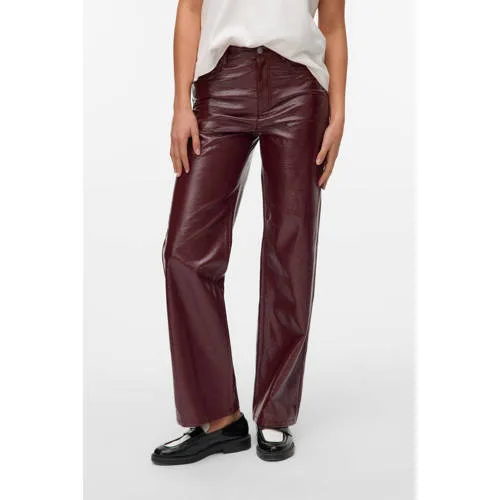 VERO MODA wide leg highwaist coated broek donkerrood
