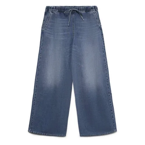 Op zoek naar een relaxte jeans met een moderne pasvorm die je zo aantrekt en klaar bent om te gaan? De VERO MODA Vmvaleria Mr Wide Pull Up Jeans combineert het gemak van een jogger met de uitstraling van een klassieke denim. Dankzij de elastische tailleband met koord sluit de broek comfortabel aan rond je middel, terwijl de wide leg pijpen voor een losse, eigentijdse look zorgen.Comfortabele wide leg met denim look Wide leg jeans met lange pijpen voor een moderne, rechte valling Regular waist met elastische tailleband en koord voor een comfortabele, verstelbare pasvorm Gemaakt van een zachte denimkwaliteit met 90% katoen en 10% viscose Voorzien van riemlussen, zodat je ook je favoriete riem kunt dragen Klassieke 5-pocket styling met twee achterzakken, twee voorzakken en een muntzakje Effen kleur, makkelijk te combineren met tops, truien en blazers Maatadvies: dit model valt normaalCasual gemak voor elke dagDe pull-on taille zonder knoop of rits maakt deze jeans ideaal voor drukke dagen. Trek de broek eenvoudig aan, strik het koord en je outfit staat. De wide leg pasvorm geeft genoeg ruimte om soepel te bewegen, of je nu thuis bent, in de stad loopt of een dag op kantoor hebt.VERO MODA: denim voor jouw dagelijkse stijlVERO MODA staat bekend om modieuze basics die aansluiten bij het dagelijks leven. De collecties volgen de trends, maar blijven draagbaar en toegankelijk. Met deze jeans kies je voor een vertrouwd merk dat pasvorm en comfort belangrijk vindt.Een ontspannen jeans die je keer op keer uit de kast pakt voor een moeiteloze, moderne look.