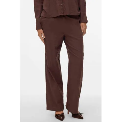 VERO MODA wide leg regular waist casual broek donkerbruin