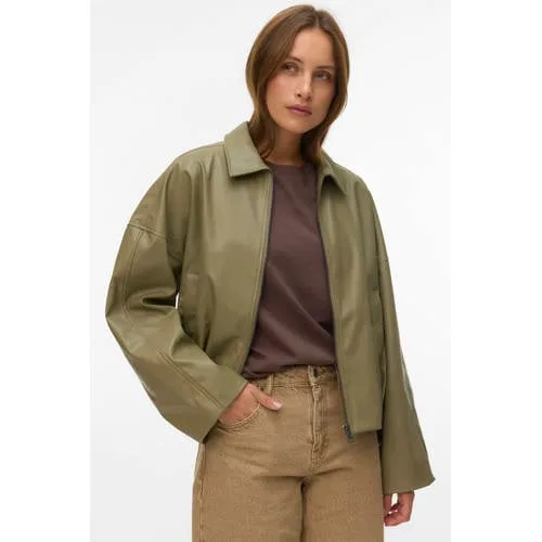 VERO MODA x Noor de Groot imitatieleren bomberjack groen Prijzen