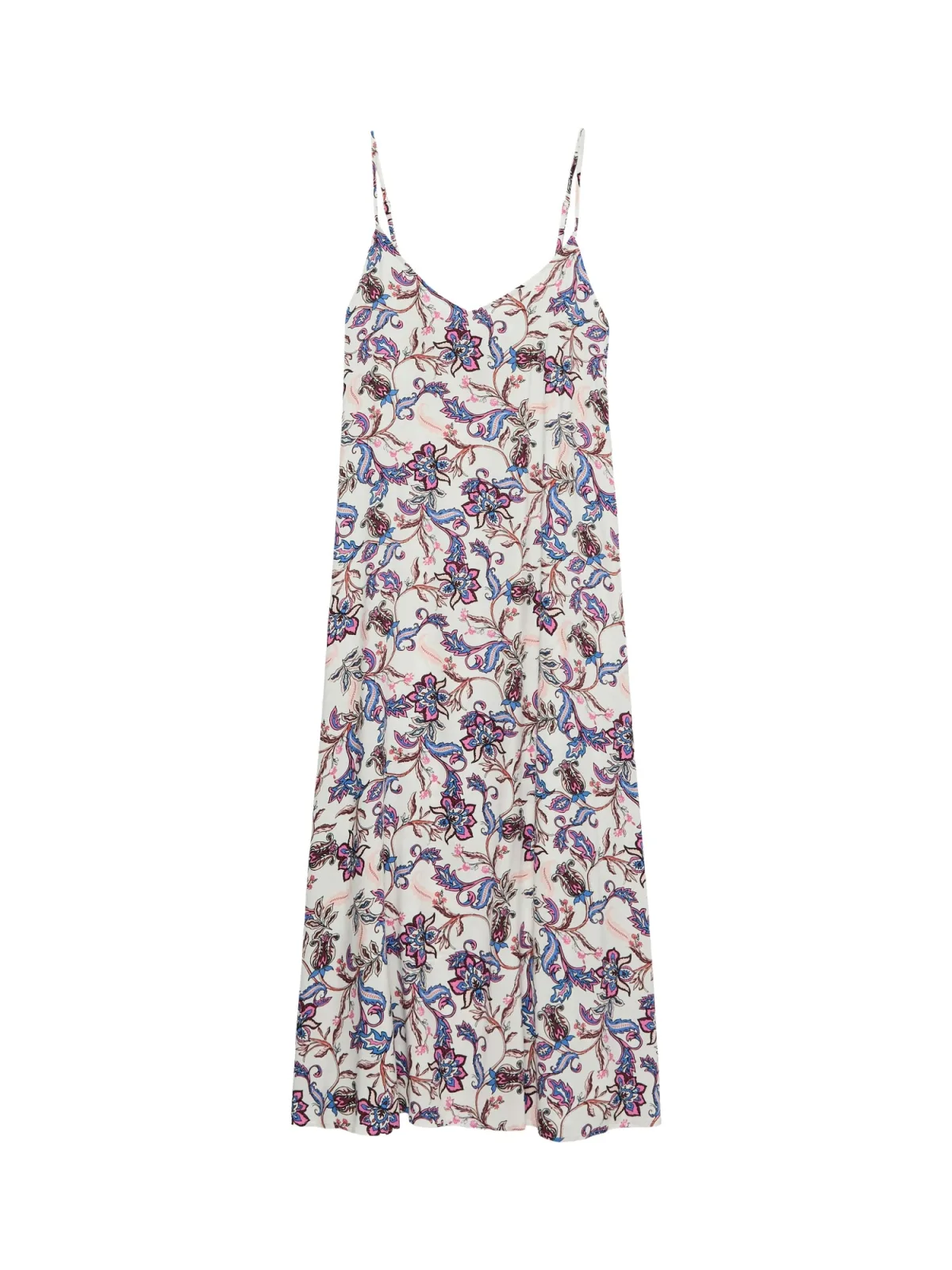 Design: Gevoerde zoom/rand, Rechte zoom; Materiaal: Viscose; Halstype: V-hals; Motief: Bloemenprint; Soort bandjes: Spaghettibandjes; Extra's: All-over patroon, Voelt zacht aan; Lengte: 7/8 lengte; Snit: Recht; Pasvorm: Normale pasvorm; Armlengte: Mouwloos