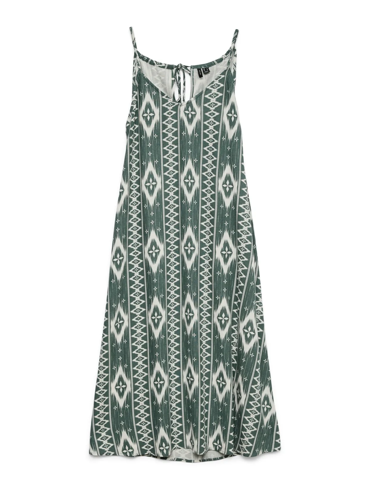 Design: Gevoerde zoom/rand, Diepe snit/decolleté, Om te knopen/binden; Materiaal: Viscose; Halstype: V-hals; Soort bandjes: Spaghettibandjes; Details: Cut-outs; Extra's: All-over patroon, Gladde stof; Lengte: 3/4 lengte; Snit: Uitlopend; Pasvorm: Losse pasvorm; Armlengte: Mouwloos