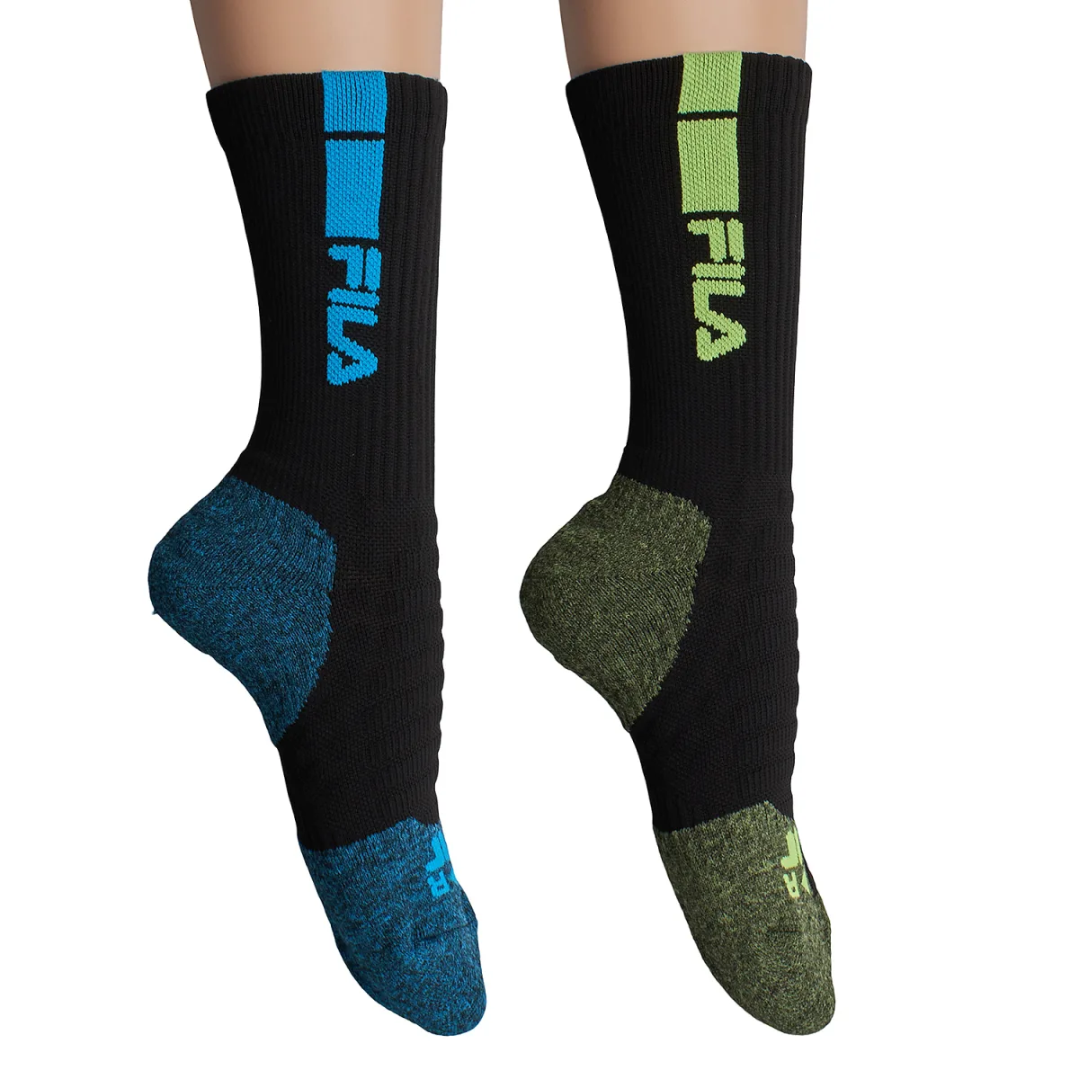 Fila-sokken ontworpen om je te ondersteunen tijdens elke workout of dagelijkse activiteit. Dit pakket van 2 paar combineert technische ontwerpen, anatomische pasvorm en hoogwaardige materialen. De ergonomische structuur met strategische versterkingen in de hiel, teen en wreef verbetert de ondersteuning van de voet en vermindert slijtage door wrijving. Details: - Versterkte anatomische voet. - Ideaal voor training of hardlopen. - Hoge schacht. - Geborduurd Fila-logo. - Links- en rechtspasvorm voor een betere fit. - Beschikt over ondersteuning van de voetboog. - Verpakking van 2 paar. - Verscheidenheid aan kleuren. - Gemaakt van stof met sneldrogende eigenschappen. - Versterkte panelen rond de teen en hiel, de meest aan slijtage blootgestelde delen, verhogen de duurzaamheid van de sokken en verlengen hun levensduur. - De ribbelafwerking voorkomt dat de sokken verschuiven. Een ideale keuze voor wie op zoek is naar duurzame, comfortabele damessokken met een dynamische uitstraling voor sport of dagelijks gebruik. Samenstelling: 97% polyester, 3% elastaan Onderhoud: Machinewas op maximaal 30°C. Niet wassen met bleekmiddelen of witmakers. Niet strijken. Niet chemisch reinigen. Lucht drogen of op een lage temperatuur in de droger drogen.
