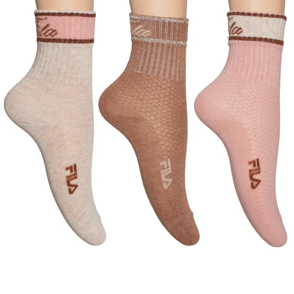 Fila meisjes korte sokken in een verpakking, ideaal voor dagelijks gebruik dankzij de zachte en comfortabele stof met een hoog katoenpercentage. Het ontwerp kenmerkt zich door een geweven Fila-logo detail aan de bovenkant, dat een sportieve en stijlvolle uitstraling toevoegt zonder concessies te doen aan comfort. Perfect voor school, sport of elke dagelijkse activiteit, ze bieden een comfortabele pasvorm die zich aan de voet aanpast en met je meebeweegt voor optimaal comfort. Details: - Verpakking van 3 paar enkelsokken. - Meisjesmodel, comfortabel en veelzijdig voor dagelijks gebruik. - Fila-logo detail geweven aan de bovenkant met een glanzend effect, dat een mooie en originele touch toevoegt. - Zachte stof met een hoog katoenpercentage voor meer comfort. - Elastische aanpassing voor een betere pasvorm om de voet. - Samenstelling: 62% katoen, 36% polyester, 2% elastaan. Een praktische en functionele optie voor degenen die op zoek zijn naar comfortabele, duurzame sokken met een vleugje stijl voor dagelijks gebruik. Samenstelling: 62% Katoen, 36% Polyester, 2% Elastaan Verzorging: Machinewas op een maximum van 30°C. Gebruik geen bleekmiddel of witmakers. Niet strijken. Niet droogreinigen. Lucht drogen of op lage warmte in de droger drogen.