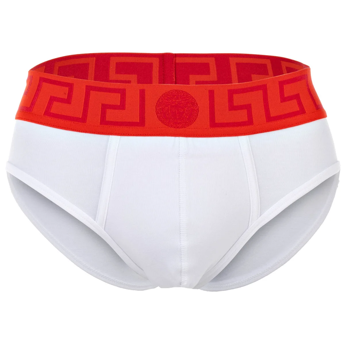 Elegante herenonderbroeken van het merk VERSACE. Ondergoed van hoge kwaliteit in effen kleuren. Greca-patroon en Medusa-motief op de elastische tailleband.