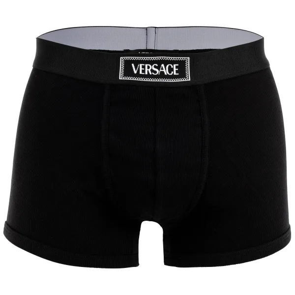 Versace Korte Trunk Tex Ribbekatoenen Boxershorts
