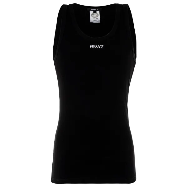 Hoge kwaliteit VERSACE tanktop voor mannen met een elegant ontwerp. Geribbeld vest met een ronde halslijn en logodetails die typisch zijn voor het merk.