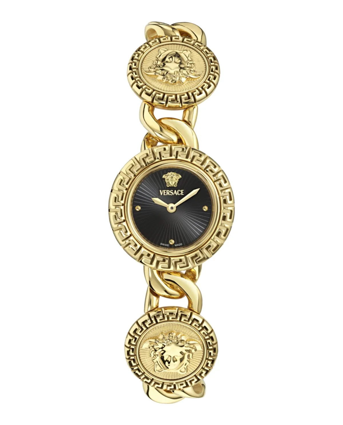 - Bij secretsales.nl kun je Versace La Greca Stud Icon Dames Horloge Goudkleurig VE0Q00525 kopen voor slechts €1.149,00