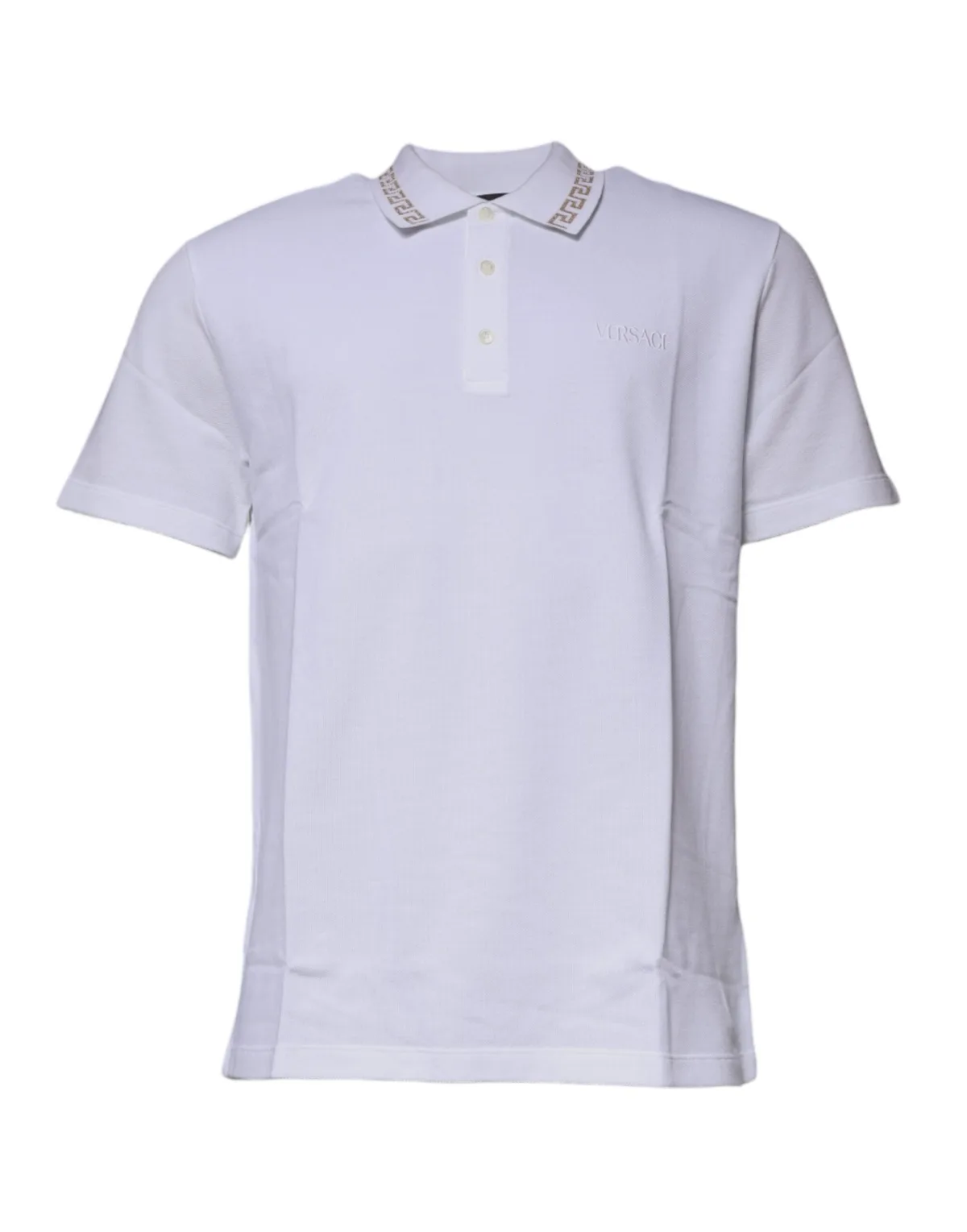 Verhoog je look. Straal vertrouwen uit. Dit Versace poloshirt biedt premium comfort met iconische stijl. De zachte, ademende katoen piqué stof zorgt voor de hele dag comfort, of je nu bij een informele bijeenkomst of een verfijnd evenement bent. Het kenmerkende Griekse sleutelpatroon op de kraag voegt een vleugje verfijnde elegantie toe. Het subtiele, geborduurde Versace-logo toont op een bescheiden manier je verfijnde smaak. Geniet van de perfecte fusie van klassiek design en moderne luxe. Het onderhoudsarme ontwerp betekent dat er altijd moeiteloos scherp uitziet.
