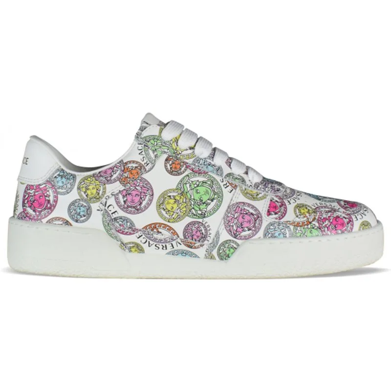 Illus Medusa Versace sneakers van wit leer.Veelkleurig Medusa-logo.Vetersluiting.Versace-inscriptie op de hiel.Made in Italy.