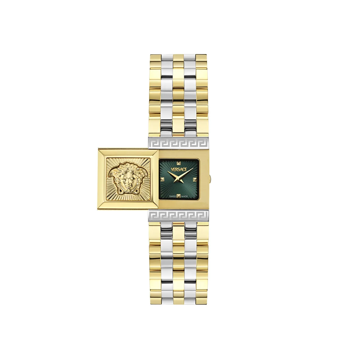 Dit Versace Dames horloge beschikt over een Quartz binnenwerk. De kast ( mm) is vervaardigd uit RVS (Goudkleurig) en heeft een Saffierglas. De band is Multi RVS. Dit horloge uit de Versace Versace Reveal reeks is een mooi en tijdloos geschenk. Verras jezelf of iemand anders met dit cadeau. Bovendien geniet u hierbij van 2 jaar garantie tegen alle fabricagefouten.