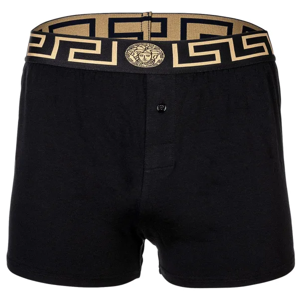 Elegante geweven boxershorts voor heren van het merk VERSACE. Hoogwaardige broek met Greca-patroon en Medusa-motief op de elastische tailleband. Zeer hoge kwaliteit.