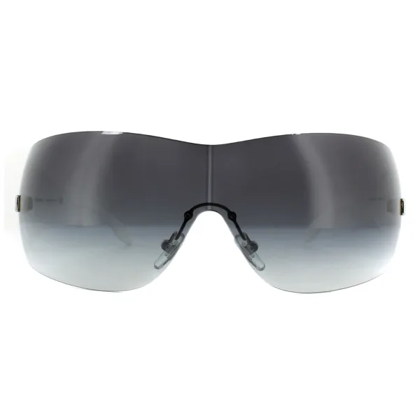 Versace Zonnebril VE2054 10008G Zilver Grijs Gradiënt zijn een grote verpakte schildstijl, een van de klassieke stijlen van Versace die ze doen die dit doen. Het Versace-letterso-logo verschijnt aan de tempels voor die stempel van authenticiteit en kwaliteit.