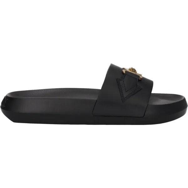 Versace Zwarte Leren Slippers