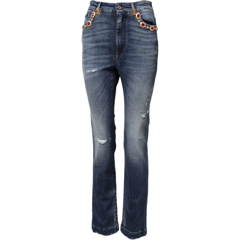 Verhoog, betover, definieer je stijl met deze High-Waist Tapered Denim Jeans. Ze bieden een unieke mix van edgy cool en verfijnde schittering, met een flatterende hoge taille en een moderne taps toelopende pijp die je silhouet prachtig vormt. De distressed details voegen een moeiteloos coole esthetiek toe, terwijl sprankelende stenen versieringen op het klassieke vijf-pocket ontwerp een vleugje glamour geven. Ontworpen voor duurzaam gebruik, zijn deze jeans ook eenvoudig te onderhouden met een eenvoudige machinewas. Perfect om een statement te maken, of je ze nu chic aankleedt voor een avondje uit of combineert met casual tops voor een stijlvolle daglook.