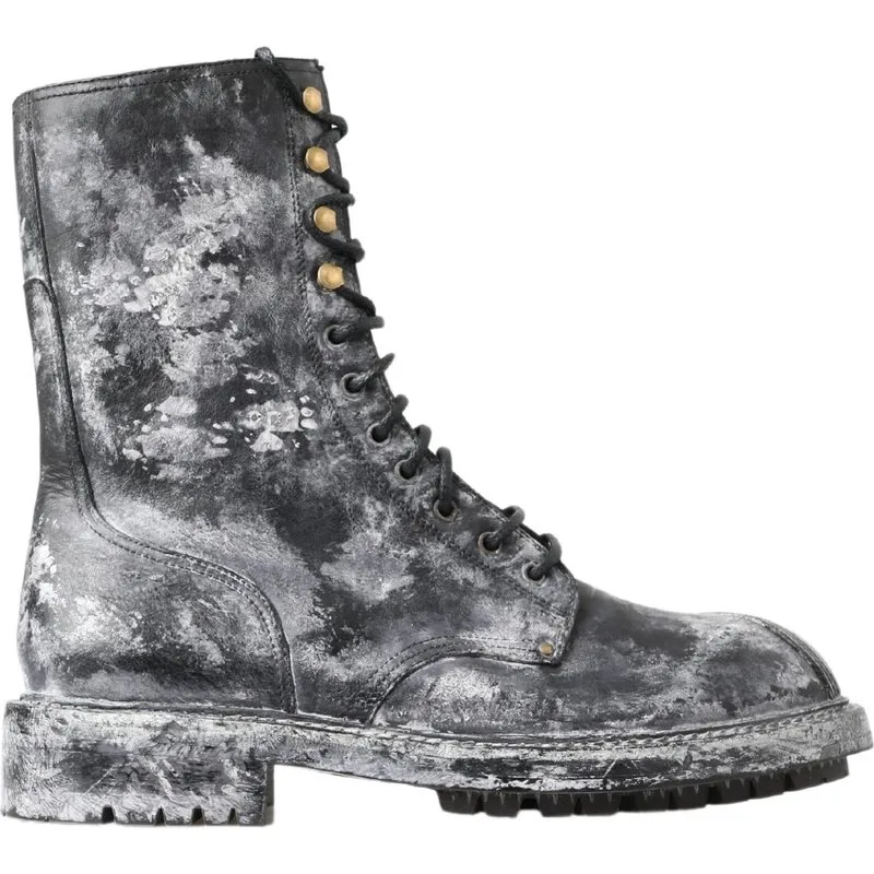 Stap naar buiten, val op en maak een statement. Deze versleten leren laarzen bieden een gedurfde stijl om je dagelijkse look te verfraaien. De vetersluiting zorgt voor een veilige, verstelbare pasvorm, terwijl de stevige rubberen zool uitstekende grip biedt. Geniet van het gemak van gemakkelijk aan- en uittrekken met de pull-on lus. Het duurzame, onderhoudsarme leren bovenwerk heeft een uniek verfspetterdesign. Perfect om een vleugje rebelse flair toe te voegen aan jeans, broeken of elke outfit die een injectie van attitude nodig heeft.