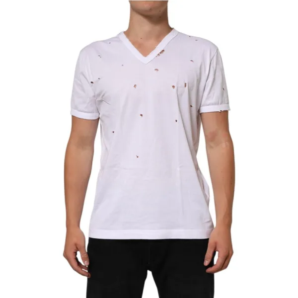 Witte versleten V-hals T-shirt met korte mouwen