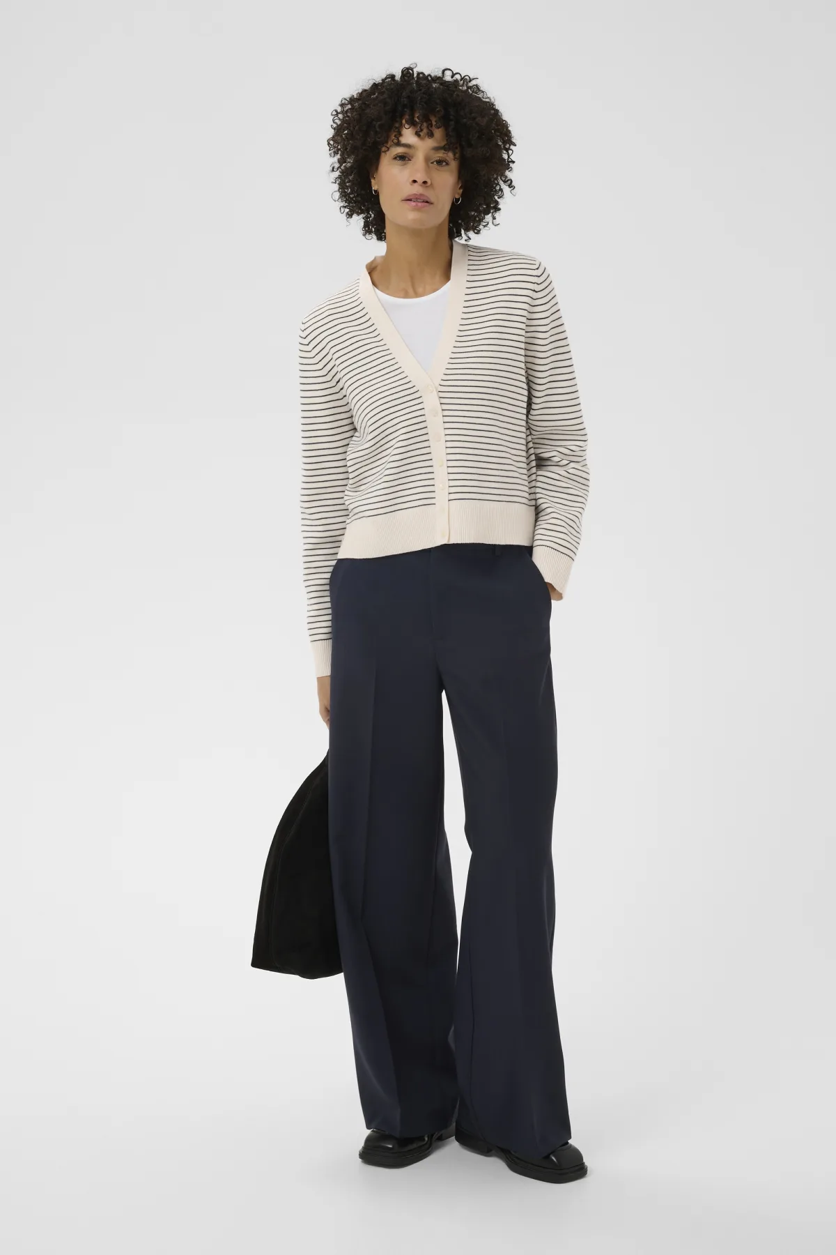 Polkadot vest met rechte pasvorm, diepe V-hals en knoopsluiting. Lange mouwen en ribgebreide boorden geven een nonchalante uitstraling.
