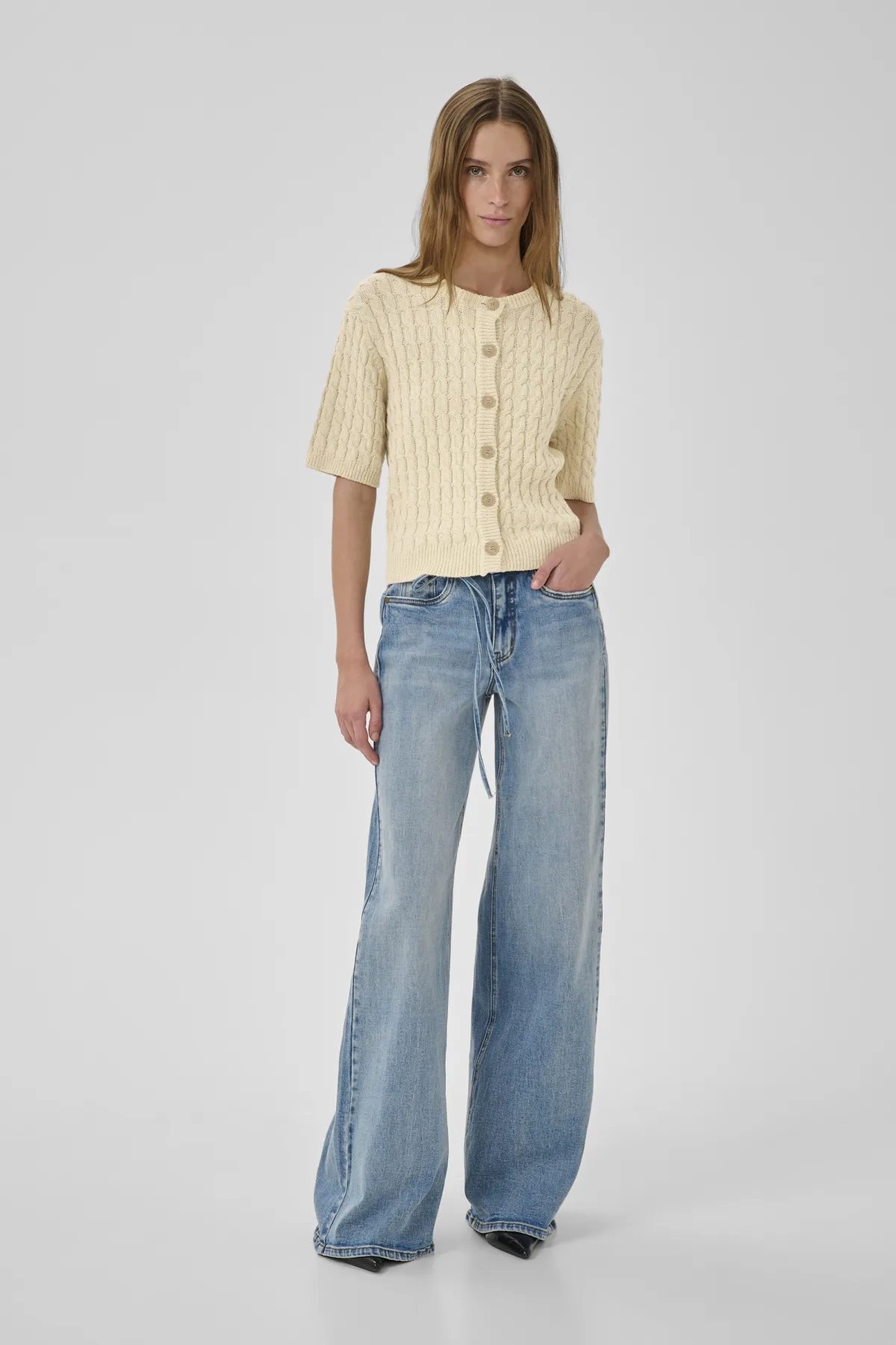Dames cable-knit cardigan met comfortabele regular fit en korte mouwen. Klassieke ronde hals, knoopsluiting en ribboord zorgen voor veelzijdige stijl.
