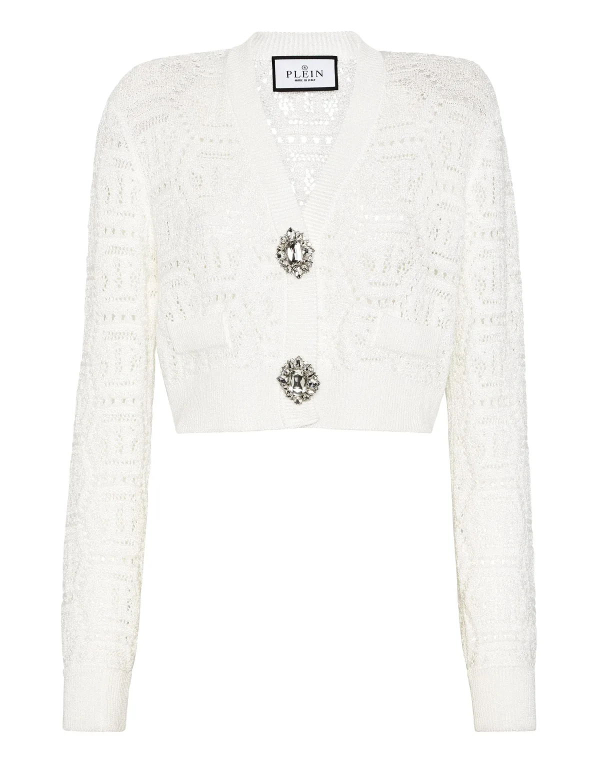 Uniek en stijlvol kan ook op een gebreid vest. Bekijk dit lurex model. Ontdek meer. Gebreid lurexgaren Kantsteek-gebreid monogram over het hele vest Juwelenbroches bootsen een knoopsluiting na Gewatteerde schouders Twee ribgebreide boorden bootsen twee zakken na Ribgebreide zomen