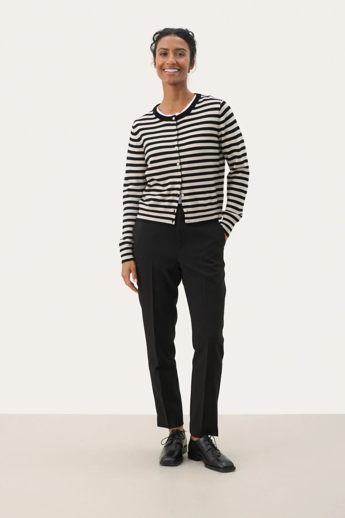 Dit dames vest heeft een klassieke pasvorm, ronde hals en lange mouwen. De knoopsluiting aan de voorkant maakt het veelzijdig in stijl, ideaal als extra laag voor elke gelegenheid. Handwas, niet bleken, niet in de droger drogen, Liggend laten drogen., koud strijken max. 110° C, 100% Wol (gecertificeerd)