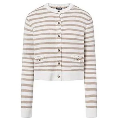 Design: Geribbelde kraag, Knop placket, Geribd ceintuurtje; Type sluiting: Knoopsluiting; Materiaal: Knitwear; Halstype: Ronde hals; Motief: Gestreept; Extra's: Fully fashioned, Voelt zacht aan; Pasvorm: Normale pasvorm; Armlengte: Lange mouw; Lengte: Normale lengte