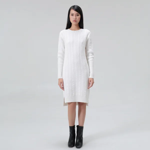Casual en androgyn, deze jumperjurk kan over panty of leggings worden gedragen. Mooie veter in de rug, textuur van gevlochten brei en langere zoom in de rug met spleten aan de zijkanten. Het hele seizoen zonder moderatie dragen. Om te associëren met laarzen en een leren jas. Productdetails: • vorm: recht • Lengte: 95 cm • Ronde halslijn • Lange mouwen