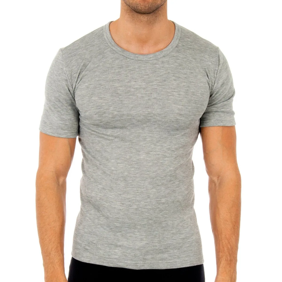 Thermisch Heren Ondergoed T-shirt. Korte mouwen. Ronde hals. Soepele stof. Kledingstuk dat perfect aansluit op het lichaam. Samenstelling: 50% Acryl, 50% Polyester Onderhoud: Handwas op max. temperatuur. 40º. Geen bleekmiddel gebruiken. Droger is niet toegestaan. Strijken op max. temperatuur. 130º. Niet chemisch reinigen.