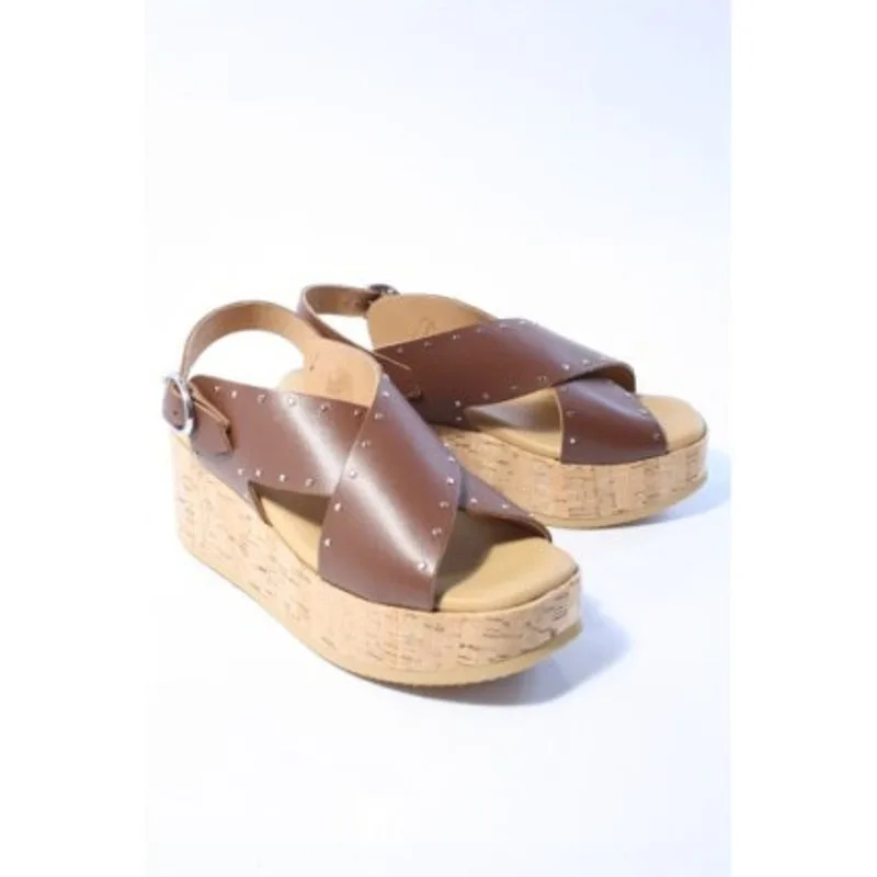 Merk: Via Vai, Model: Sandalen, Materiaal: Leer, Hakhoogte: 4 cm, Kleur: Cognac