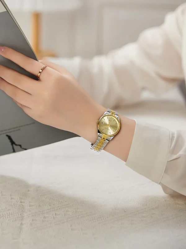 Type sluiting: Vouwsluiting; Materiaal: Metaal; Extra's: Datum functie, Quartz uurwerk, Waterbestendig tot 3 bar, Glanzend, Applicaties, Inclusief hoesje/etui, Huidvriendelijk materiaal, Licht gewicht