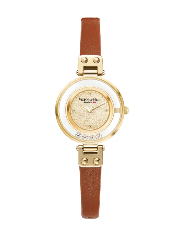 Specificaties: Victoria Hyde Analoog horloge ‘Spark’ bruin / rose-goud