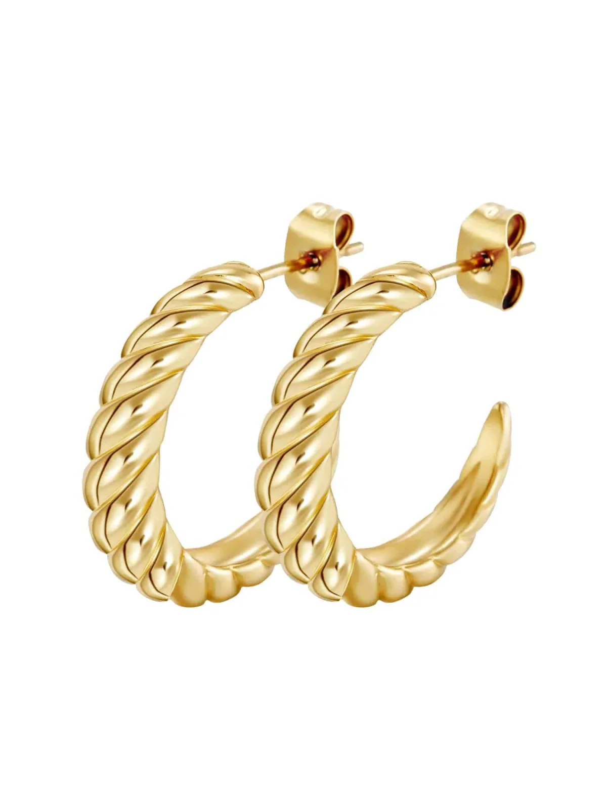 Type oorbel: Oorringen; Type sluiting: Haakjes; Materiaal: Roestvrijstaal; Extra's: All-over patroon, Gecoat, Fully fashioned, Inclusief hoesje/etui, Licht gewicht; Aantal per set: 2-delig