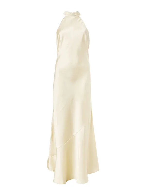 Design: Gevoerde zoom/rand, Keyholesluiting; Type sluiting: Knoopsluiting; Materiaal: Gerecycled materiaal; Motief: Effen; Soort bandjes: Haltermodel; Details: Backless; Extra's: Op staal naden, Gladde stof, Milieuvriendelijk geproduceerd; Lengte: 7/8 lengte; Snit: Getailleerd; Pasvorm: Normale pasvorm; Armlengte: Mouwloos