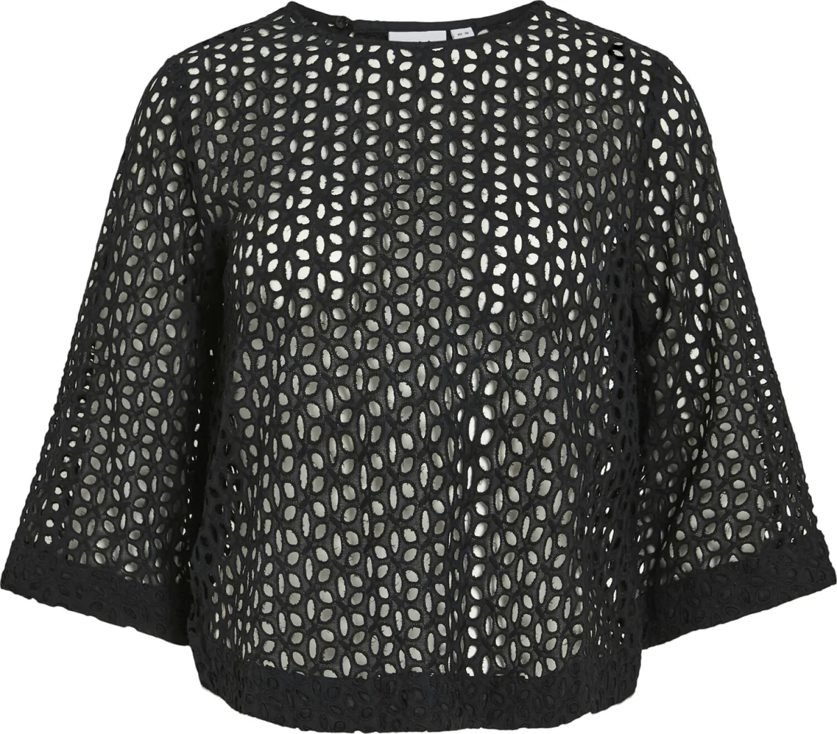 Blouse Akisa van Vila is een stijlvolle blouse met een boxy fit en ronde hals. De unieke gaatjespatroon en driekwart mouwen geven het een modieuze uitstraling. Deze blouse is perfect voor verschillende gelegenheden en zorgt voor een elegante, maar toegankelijke look.