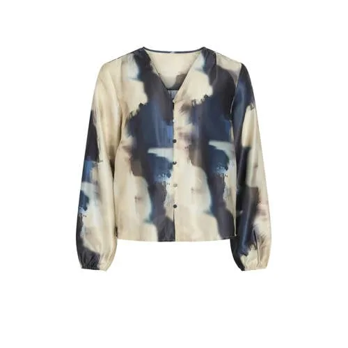 Deze VILA Visalta blouse heeft een rechtvallend model met lange ballonmouwen. De blouse is gemaakt van polyester en heeft een all over print, een v-hals en een knoopsluiting aan de voorkant.
