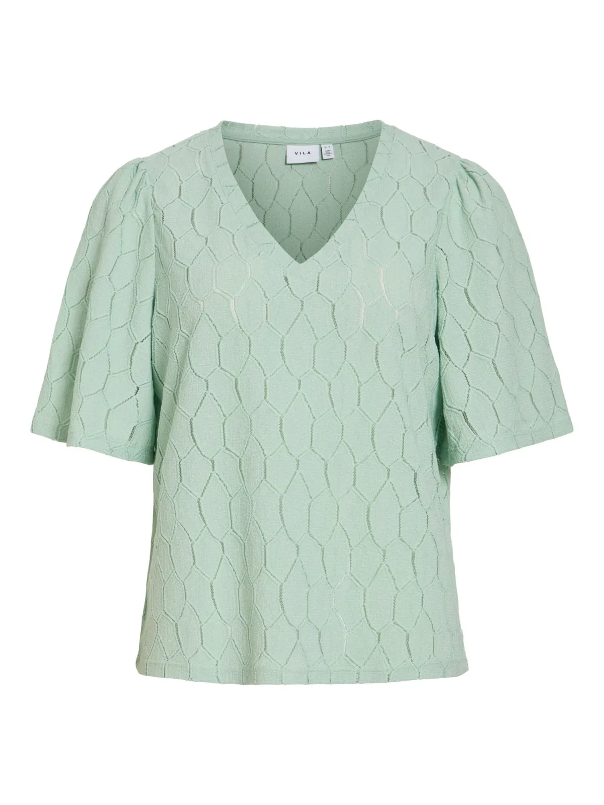 Blouse type: Blouseshirt; Design: Rechte zoom; Type sluiting: Slip; Materiaal: Gerecycled materiaal; Motief: Effen; Kraag: Zonder kraag; Extra's: Licht transparant; Pasvorm: Normale pasvorm; Armlengte: Halve mouw; Lengte: Normale lengte