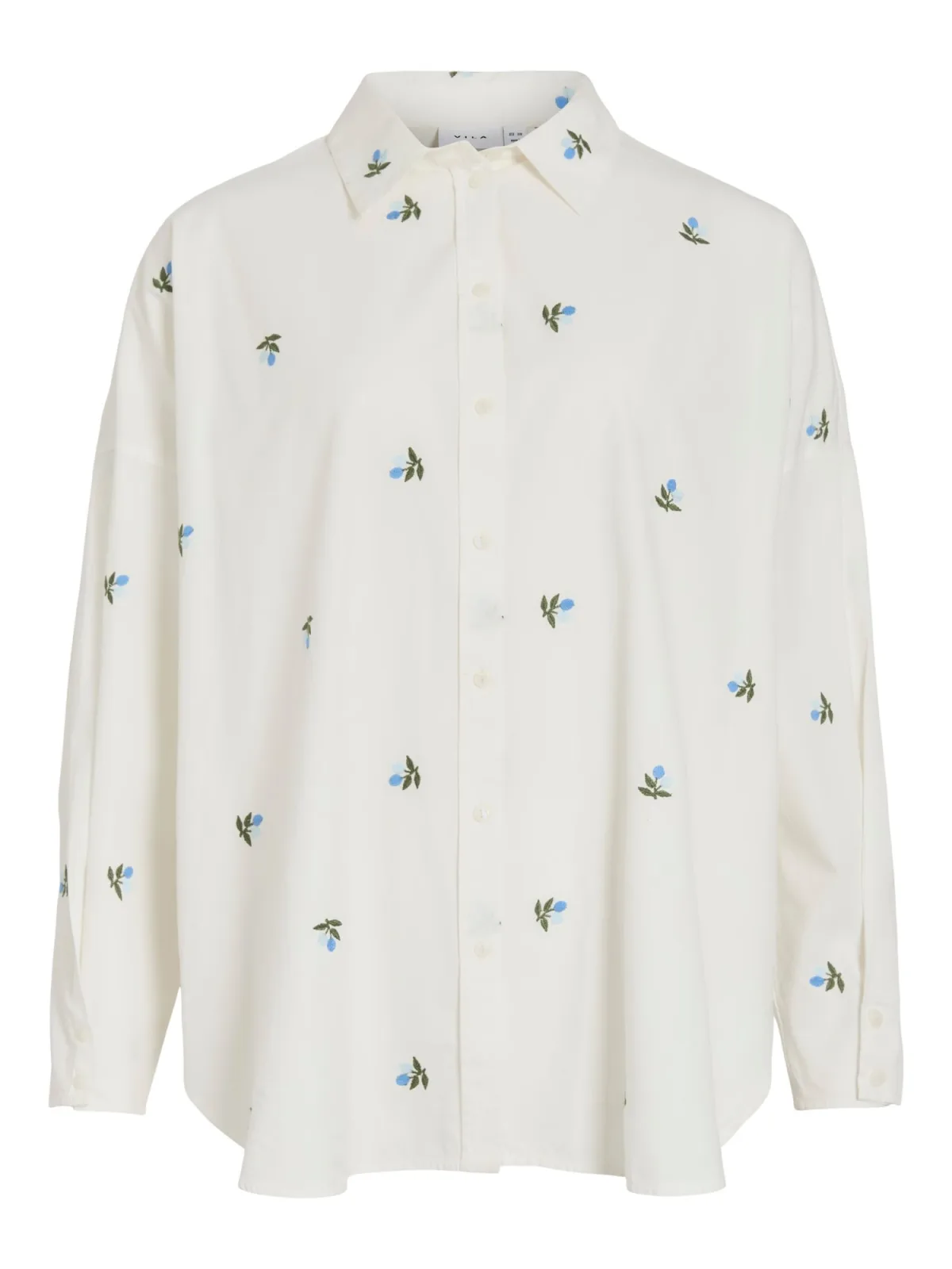 De Blouse Aila Embroidery van Vila is een casual dames blouse met een losse pasvorm en een bloemmotief. De lange mouwen hebben manchetten met knopen en de sluiting bestaat uit knopen. De overhemdkraag zorgt voor een stijlvolle en veelzijdige uitstraling.