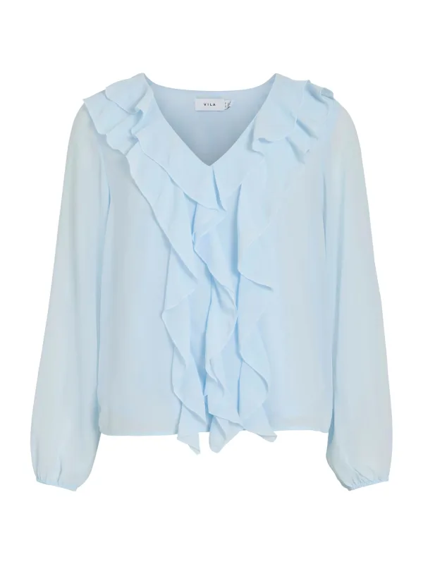 VILA Blouse ‘VIAne’ lichtblauw Prijzen