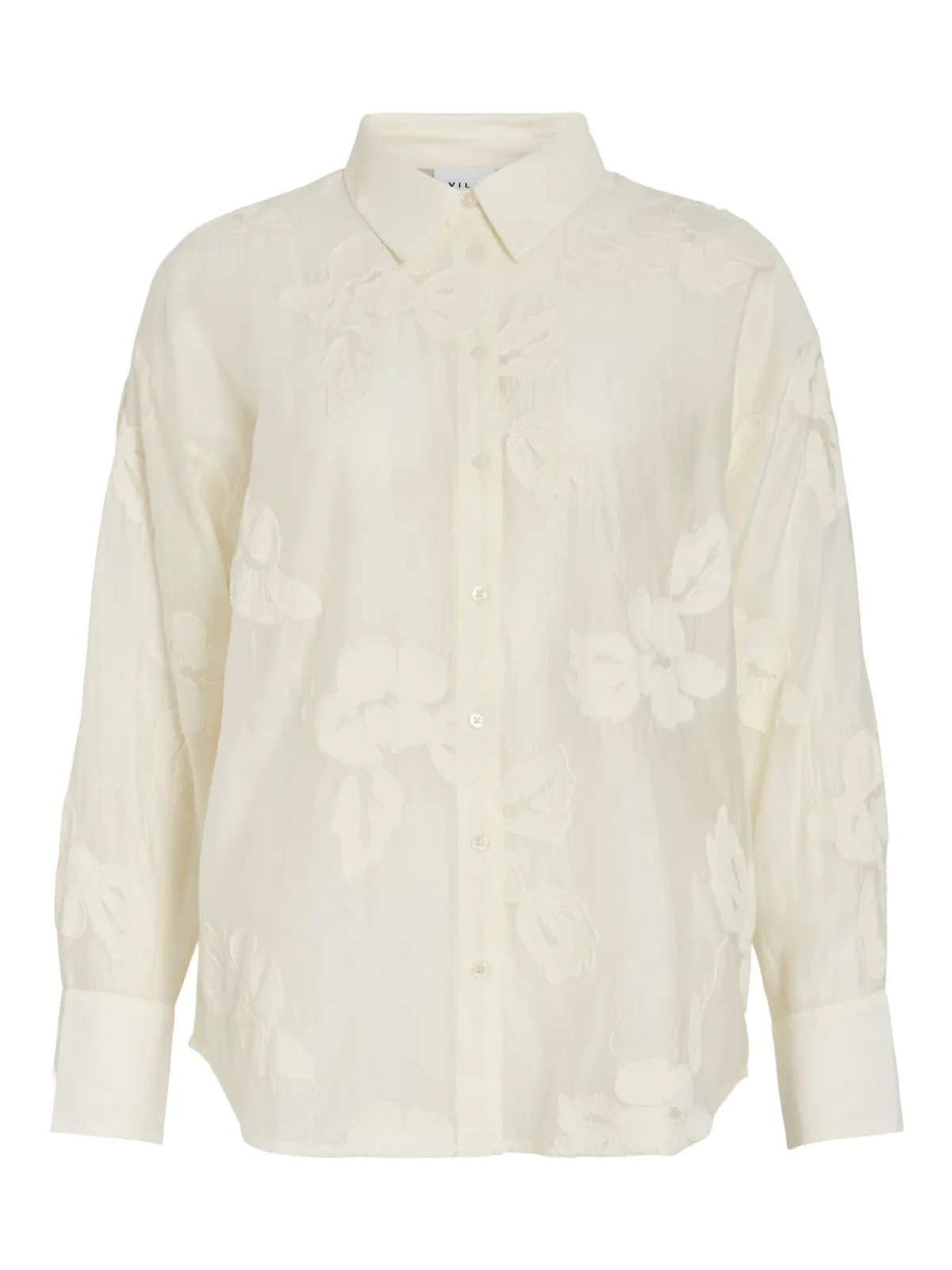 Blouse Beka Flower van Vila is een elegante blouse met een bloemenpatroon, perfect voor een casual gelegenheid. De blouse heeft een button down kraag, lange mouwen met manchetten en een losse pasvorm, wat zorgt voor een comfortabele en stijlvolle uitstraling.