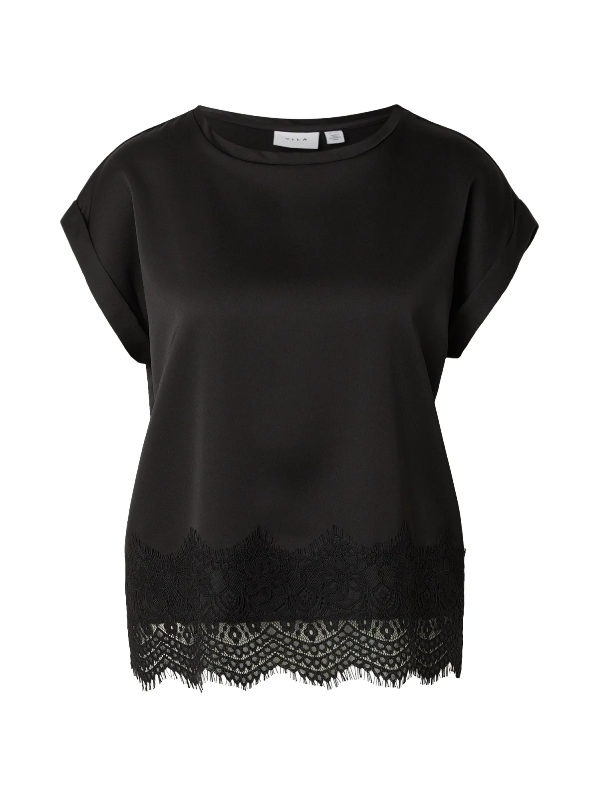 T-shirt van Vila voor dames;Los model;Ronde hals;Model 'ELLETTE';Met kant;Satijn;Ruglengte bij maat 36: 59 cm