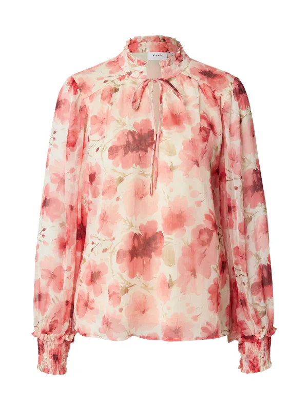 VILA Blouse ‘VIEMSA’ crème / pastelgroen / lichtrood / donkerrood