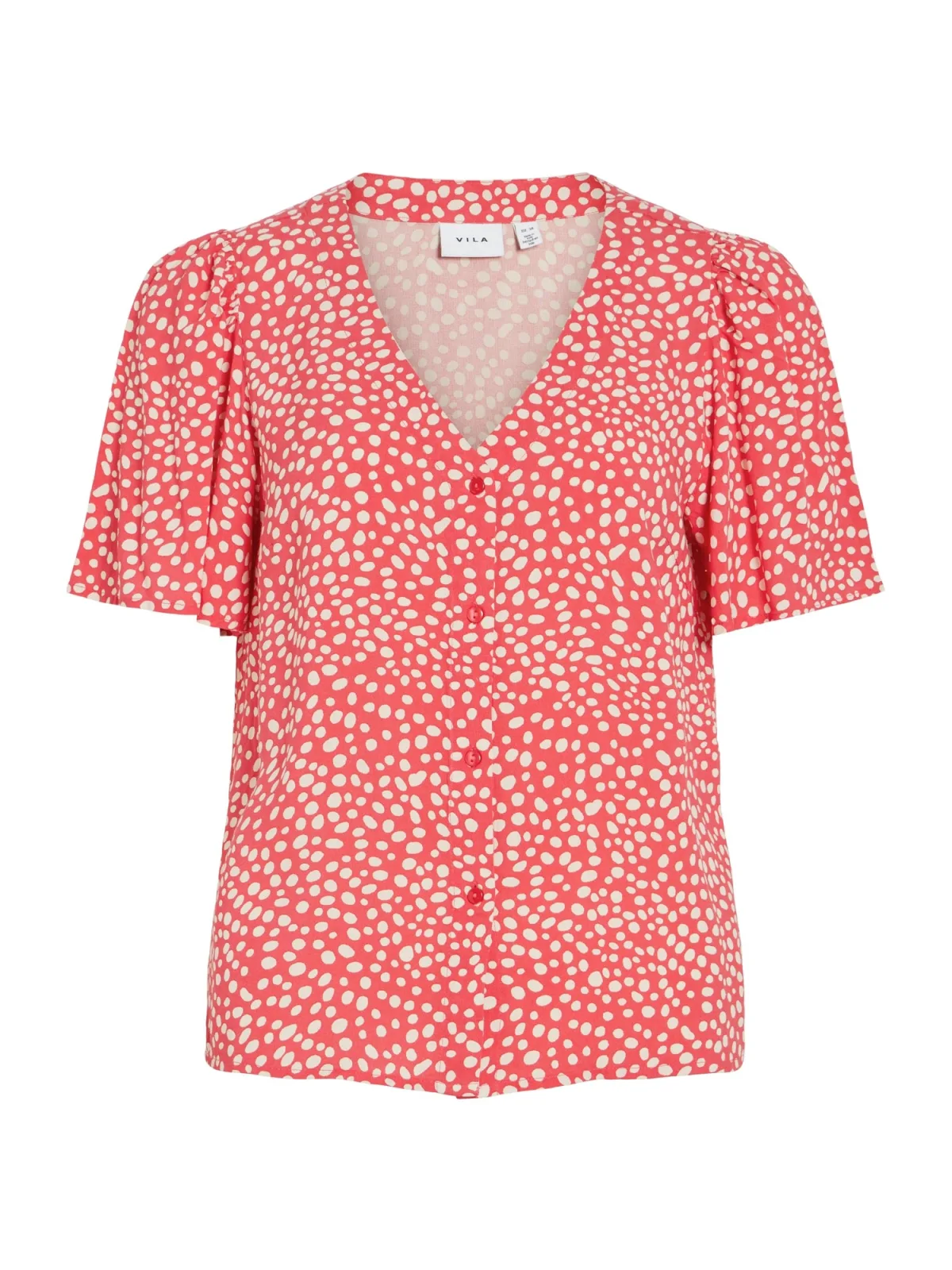 VILA Blouse ‘VIGrace’ watermeloen rood / wit