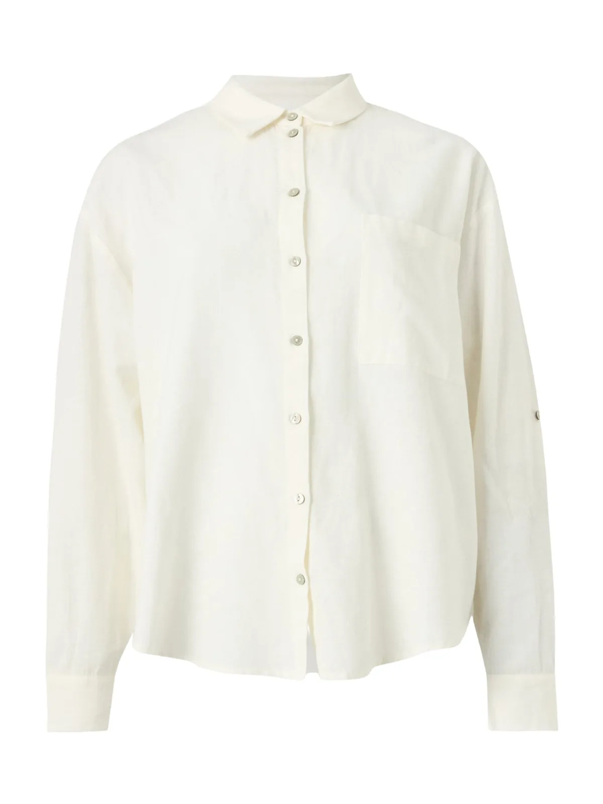 Blouse type: Klassieke blouse; Design: Ronde zoom, Borstzak, Roll-up mouwen; Type sluiting: Knoopsluiting; Materiaal: Viscose; Motief: Effen; Kraag: Kentkraag; Extra's: Op staal naden, Lichte stof; Pasvorm: Losse pasvorm; Armlengte: Lange mouw; Lengte: Normale lengte