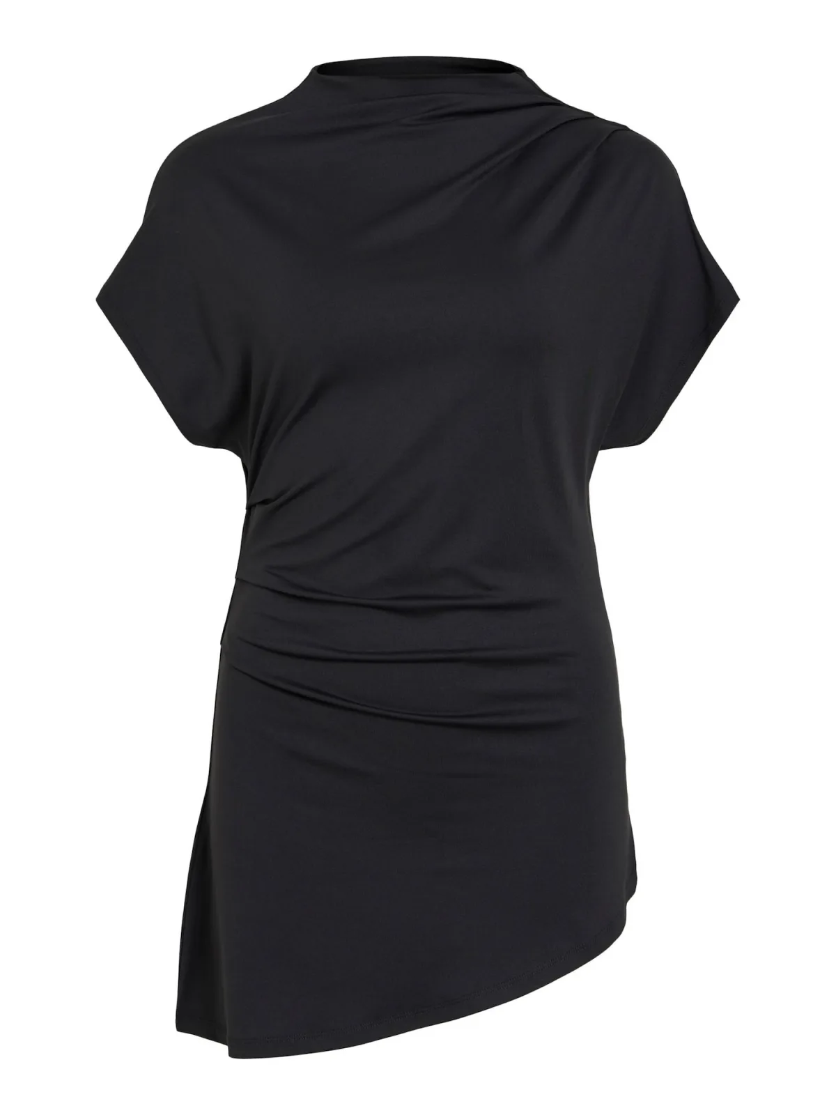 Blouse type: Blouseshirt; Design: Asymmetrische zoom; Type sluiting: Slip; Halstype: Opstaande kraag; Motief: Effen; Kraag: Opstaande kraag; Details: Gedrapeerd; Extra's: Buigzame grip; Pasvorm: Slanke pasvorm; Armlengte: Kwartmouw; Lengte: Lange pasvorm