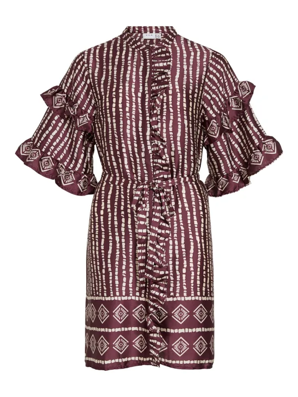 Design: Rechte zoom, Tailleriem; Type sluiting: Knoopsluiting; Materiaal: Gerecycled materiaal; Halstype: Ronde hals; Kraag: Opstaande kraag; Details: Ruches, Volant, Plooien; Extra's: All-over patroon, Milieuvriendelijk geproduceerd; Lengte: Kort/mini; Snit: Getailleerd; Pasvorm: Normale pasvorm; Armlengte: Driekwart mouw