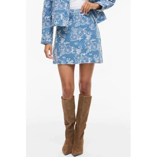 VILA gebloemde spijkerrok light blue denim