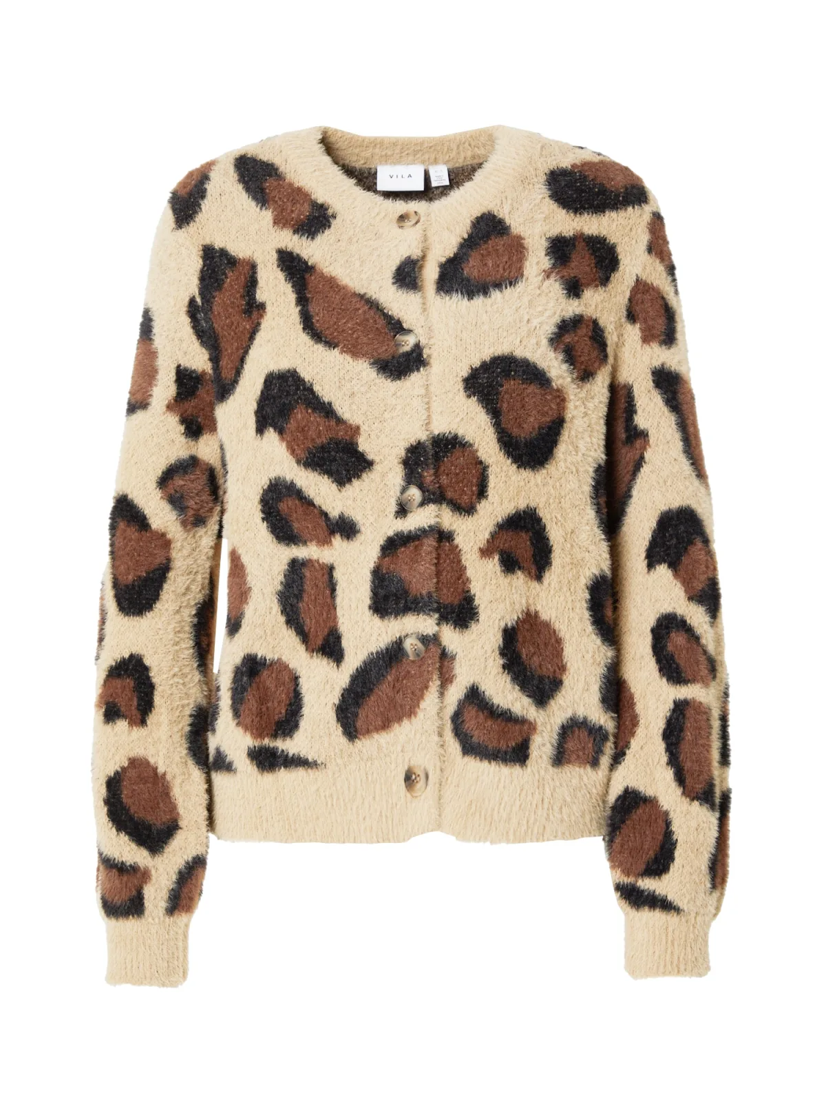 Design: Geribbelde kraag, Geribd ceintuurtje; Type sluiting: Knoopsluiting; Materiaal: Knitwear; Halstype: Ronde hals; Motief: Dierenprint; Extra's: All-over patroon, Voelt zacht aan; Pasvorm: Normale pasvorm; Armlengte: Lange mouw; Lengte: Normale lengte
