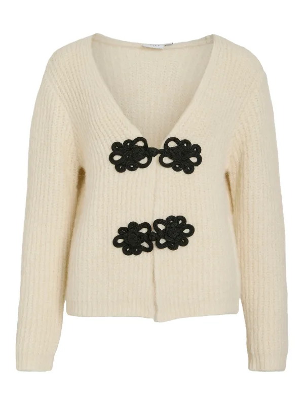 VILA Gebreid vest ‘MANT’ ecru / zwart