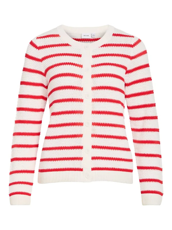 VILA Gebreid vest ‘VIDalo’ rood / wit