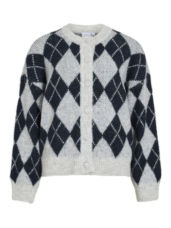 VILA Gebreid vest ‘VIKarley’ navy / lichtgrijs Prijzen